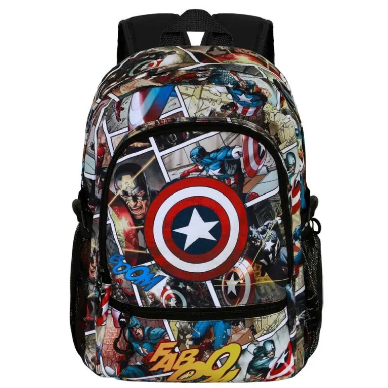 Descubre la mochila urbana ligera de Marvel Capitán América Comic Fight FAN 2.2 en un vibrante diseño multicolor, ideal para fanáticos de este icónico superhéroe. Esta mochila presenta un llamativo estampado de cómics del Capitán América, incluyendo su distintivo escudo. Cuenta con un compartimento principal espacioso y un interior con forro acolchado para proteger tus dispositivos electrónicos. Además, dispone de dos bolsillos frontales y dos bolsillos laterales de malla para un almacenamiento adicional. Las correas al hombro acolchadas y ajustables aseguran comodidad durante su uso, mientras que la cinta trasera adaptable a trolley añade un plus de versatilidad. Sus dimensiones son 44 x 31 x 18 cm, perfectas para el uso diario o como regalo original para fans de Marvel.