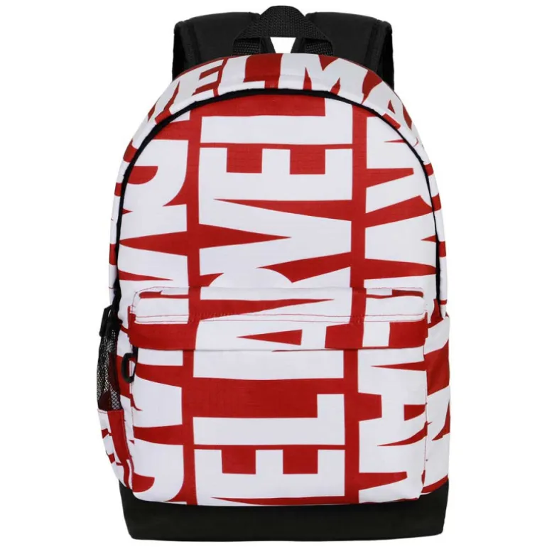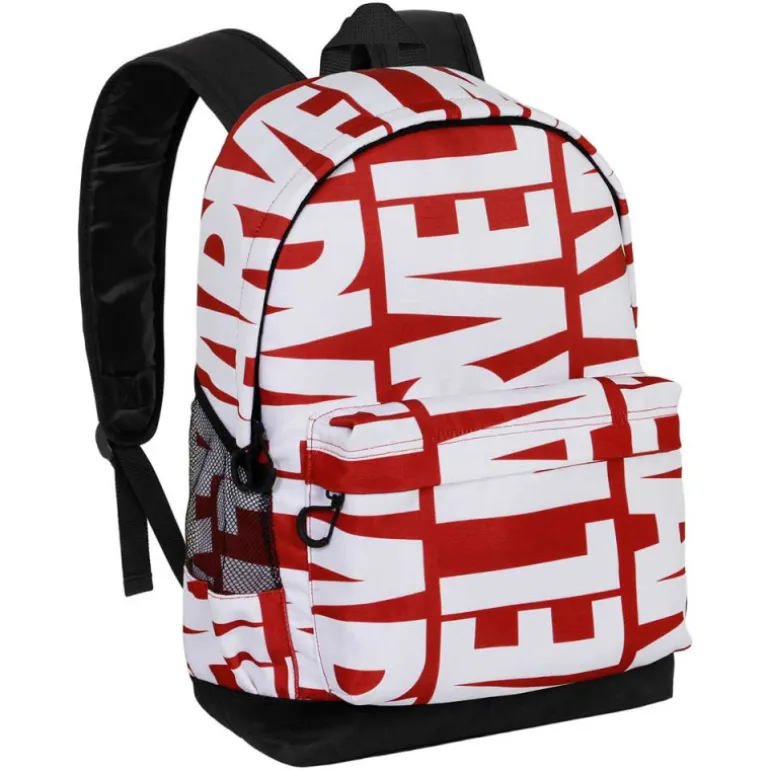 La mochila Marvel Marvelmania es la opción perfecta para todos los fans de Marvel o para los que buscan un regalo original y útil. Esta mochila urbana de un compartimento es fabricada con material reciclado de alta resistencia (RPET), por lo que también es una elección consciente con el medio ambiente.