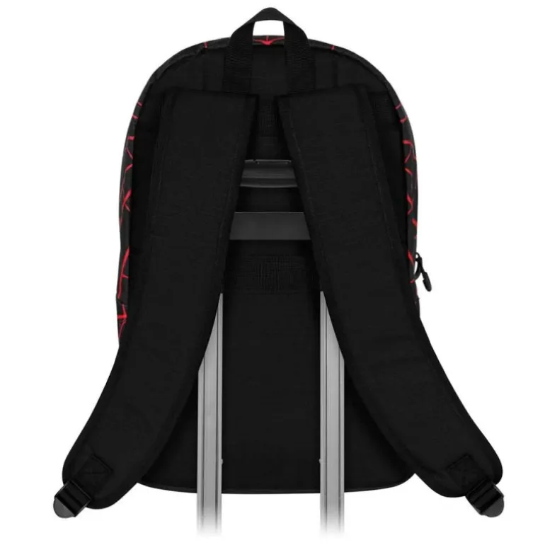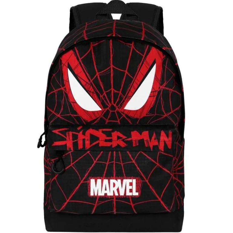 Descubre la Mochila Marvel Spiderman Vision HS FAN 2.2, un accesorio imprescindible para los amantes del héroe arácnido. Esta mochila negra presenta un llamativo diseño con una gran máscara de Spiderman en tonos rojos y blancos sobre un fondo negro con detalles de telarañas rojas. Fabricada en material Ripstop de alta resistencia, es repelente a los líquidos, lo que la hace ideal para el uso diario. Su compartimento principal es espacioso, complementado con un bolsillo frontal perfecto para pequeños objetos. En el interior, un forro con ilustraciones de cómics de Spiderman agrega un toque especial, junto a un bolsillo dedicado para dispositivos electrónicos. Las correas acolchadas y ajustables garantizan comodidad, y la cinta para el trolley ofrece conveniencia en viajes. Con dimensiones de 18 x 31 x 44 cm, esta mochila es perfecta para llevar todo lo necesario con estilo y funcionalidad.