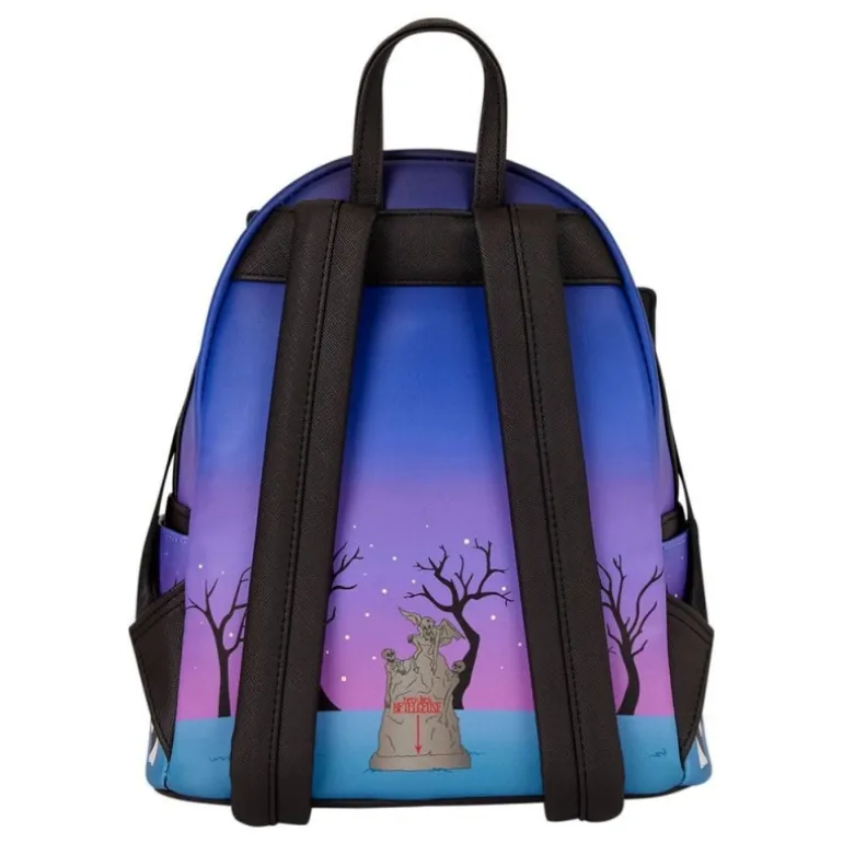 Descubre la mochila mini de Beetlejuice de Loungefly, un accesorio único para los verdaderos fanáticos de este icónico personaje. Esta mochila está diseñada con un impresionante detalle del hogar encantado de la película, destacando personajes emblemáticos como Beetlejuice en el frente.
