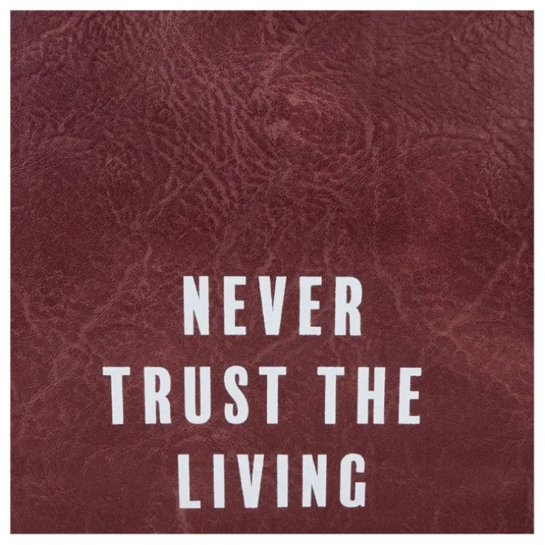 Fabricada en cuero PU de alta calidad, esta mochila no solo es elegante sino también resistente. Sus dimensiones de 22 x 10 x 30 cm la convierten en el accesorio perfecto para llevar tus pertenencias diarias con estilo. En el exterior, la mochila presenta un color burdeos profundo con la frase ‘Never Trust the Living’ en un llamativo contraste blanco, evocando la atmósfera fantasmal de la película.
