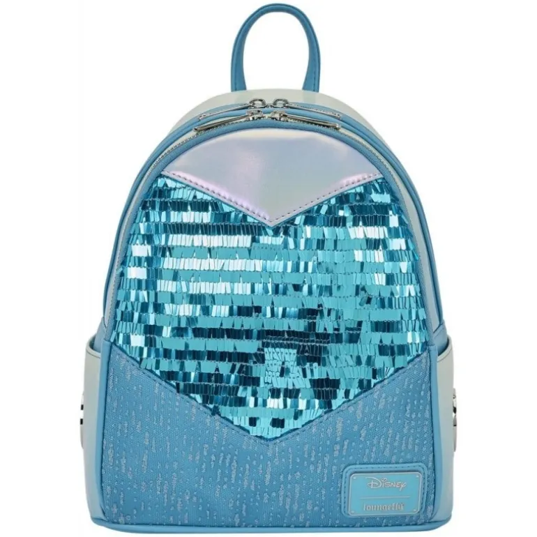 Descubre la magia de Frozen con la Mochila Mini Elsa Glitter Sequin de Loungefly. Esta mochila, con medidas de 23 x 27 x 11 cm, es perfecta para los fans de Elsa. Destaca por su brillante diseño con lentejuelas azules que evocan la elegancia del hielo. Fabricada con materiales de alta calidad como poliéster y cuero PU, garantiza durabilidad y estilo.