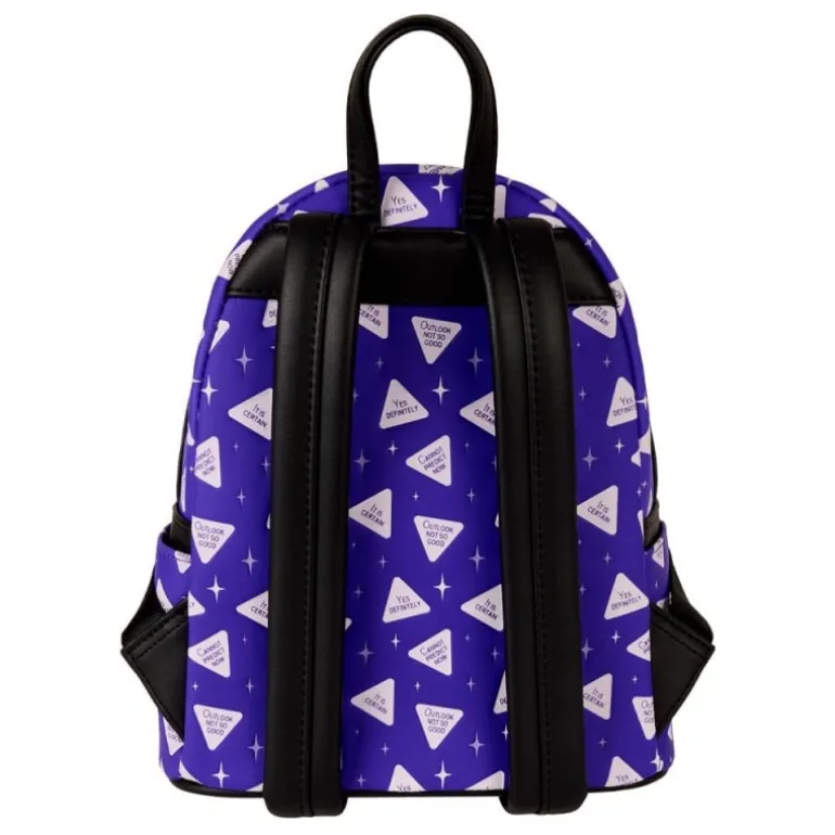 El interior está completamente forrado con detalles gráficos que repiten las frases de la bola mágica, asegurando que cada rincón de la mochila mantenga la temática de diversión y misterio. Las correas ajustables garantizan comodidad durante todo el día, mientras que el cierre de cremallera asegura la seguridad de tus pertenencias.