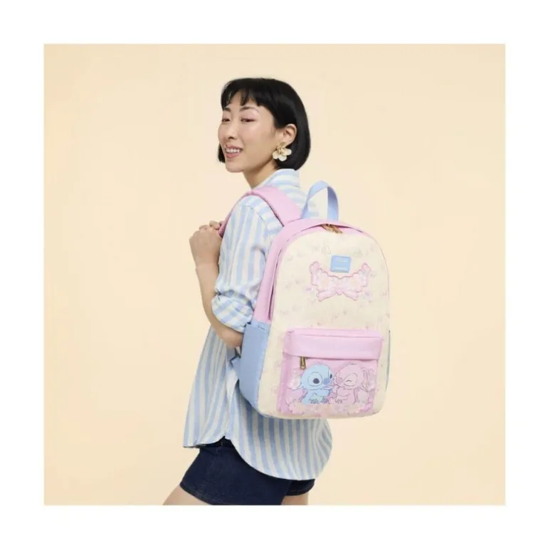 Descubre la mochila de alta calidad de Lilo & Stitch, una pieza esencial para los amantes de Disney. Este encantador diseño de Loungefly presenta un exterior en tonos suaves de rosa y azul, con un estampado adorable de Lilo y Stitch en la parte frontal. Fabricada en nylon duradero, esta mochila es perfecta para el uso diario.