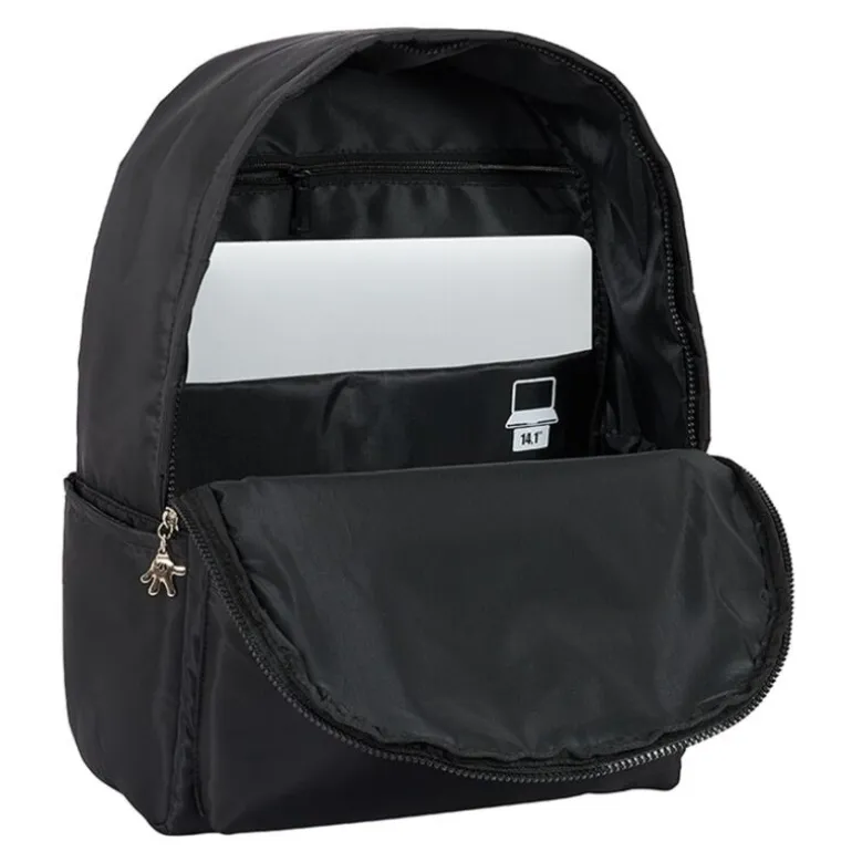 Cuenta con un alojamiento acolchado para portátiles de hasta 14,1 pulgadas, asegurando la protección de tus dispositivos electrónicos. Además, incluye un bolsillo frontal con cremallera para objetos de fácil acceso y un bolsillo interior para organizar tus pertenencias con seguridad.