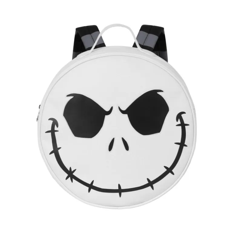 Descubre la mochila redonda Disney Pesadilla Antes de Navidad, diseñada para los auténticos fans de este clásico. Este accesorio único presenta la icónica cara de Jack Skellington en un vibrante blanco, ideal para destacar tu estilo. Con un compartimento principal con cierre de cremallera en la parte superior, es perfecta para llevar tus pertenencias de forma segura. En su interior, cuenta con un forro con temática de la película y un pequeño bolsillo con cremallera para guardar objetos pequeños.