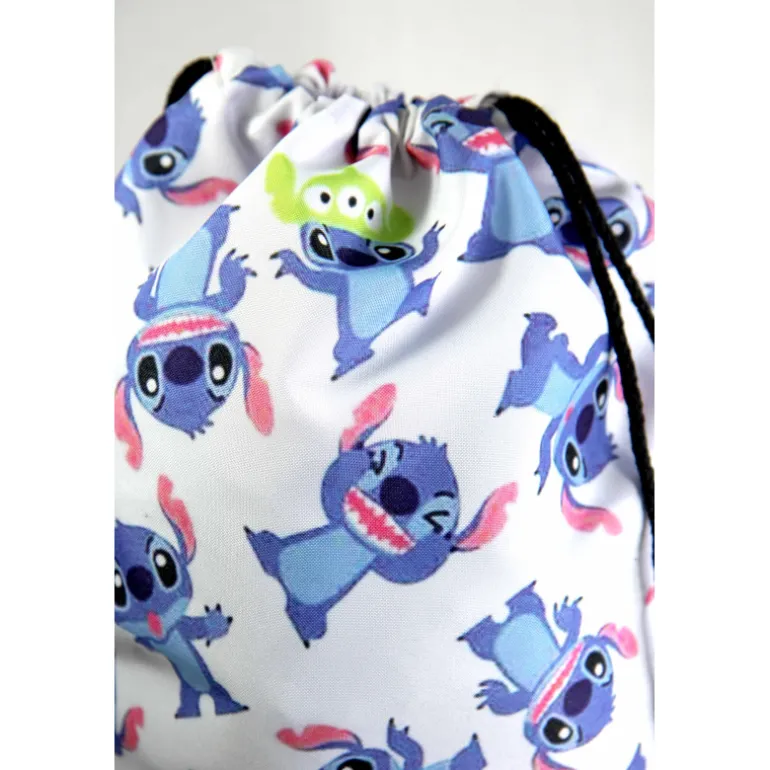 El diseño de esta mochila saco está lleno de imagenes de Stitch, el entrañable extraterrestre azul de la famosa película de Disney, Lilo & Stitch. Su estampado vibrante y colorido lleno de detalles encantadores te transportará directamente a la aventura y la diversión del universo Disney. Además entre todos ellos podrás encontrar uno con un gorrito de otro alien adorable de Disney, el de Toy Story!