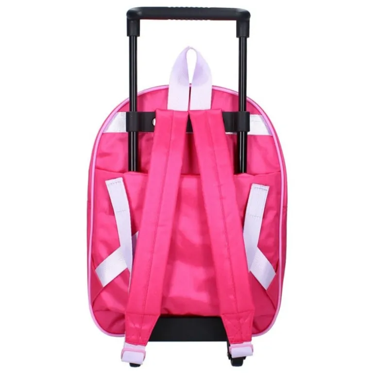 Mide 33 x 25 x 11 cm, dimensiones ideales para que los niños lleven sus pertenencias cómodamente. La mochila incluye un práctico sistema trolley que facilita su transporte en superficies lisas, y correas ajustables para adaptarse a la espalda de los más pequeños, haciendo que llevarla sea un juego de niños.