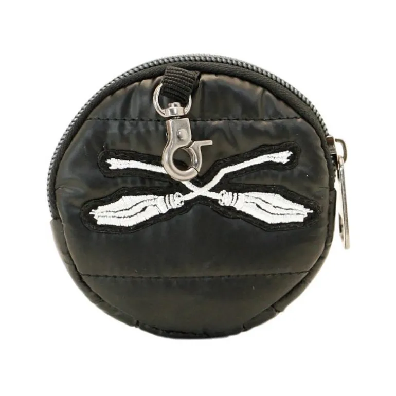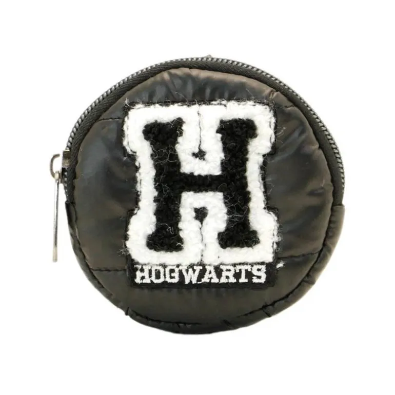 Mide aproximadamente 9 x 9 cm y tiene un fantástico diseño, homenaje al famoso colegio de magia y hechicería Hogwarts, con la letra H en una parte y dos escobas cruzadas en la otra, representando al quidditch, el deporte más practicado en este colegio. Cuenta con cremallera y un único compartimento, perfecto para billetes y monedas. Está fabricado en una perfecta combinación en material acolchado, sin usar materiales de origen animal en su fabricación, y cuenta con un pequeño mosquetón para que enganches este monedero a donde quieras.