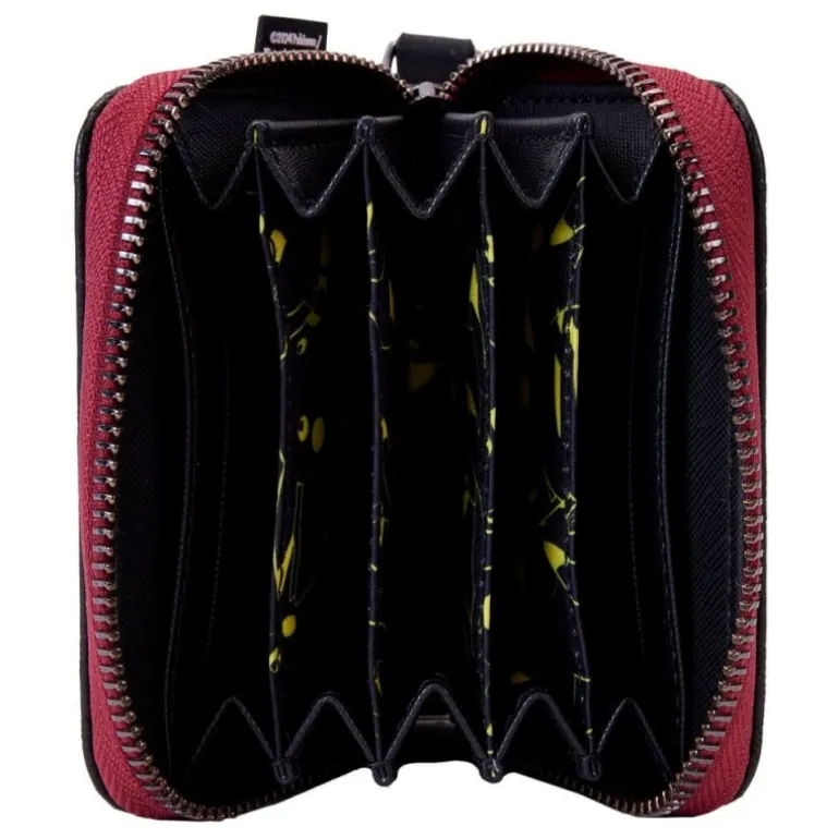 El monedero Pokemon Collectiv by Loungefly es el accesorio perfecto para los entusiastas de Pokemon que buscan combinar estilo y practicidad. Este monedero presenta un diseño elegante en colores negro y burdeos, con un patrón en relieve de Poké Balls que le otorga un toque distintivo y sofisticado. El borde con cierre de cremallera en burdeos añade un detalle vibrante y llamativo.