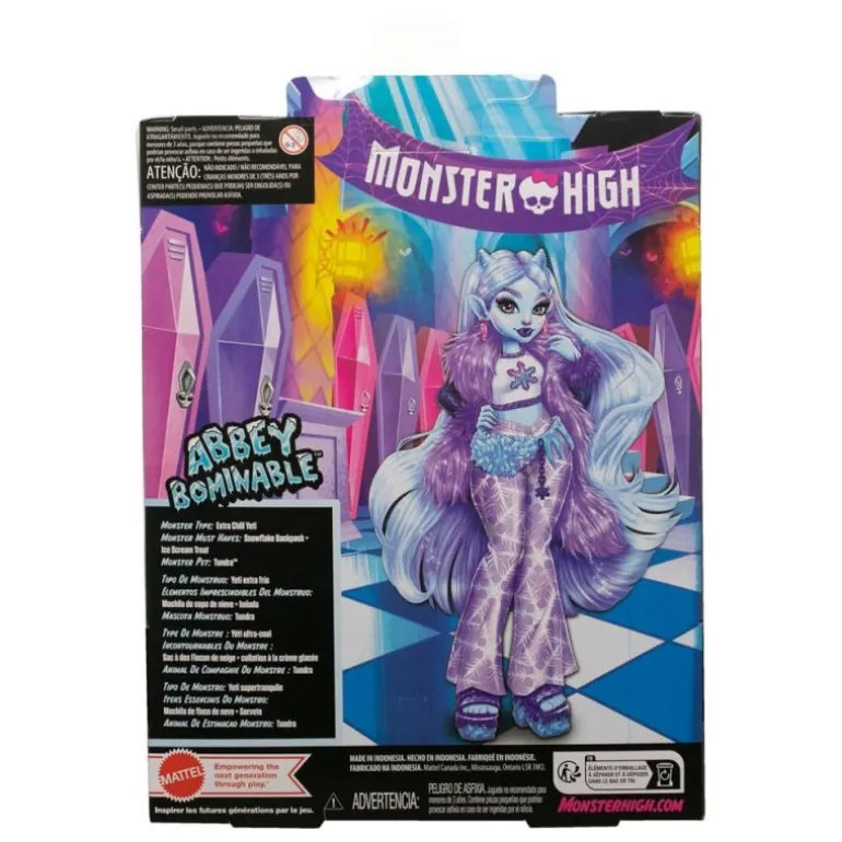 ¡Descubre la fascinante muñeca Abbey Bominable de Monster High, hija del icónico Yeti! Con un diseño único inspirado en las frías cumbres del Himalaya, Abbey presenta una figura articulada de 24,3 cm con detalles espectaculares. Destaca su piel azulada y su pelo largo multicolor adornado con accesorios invernales.