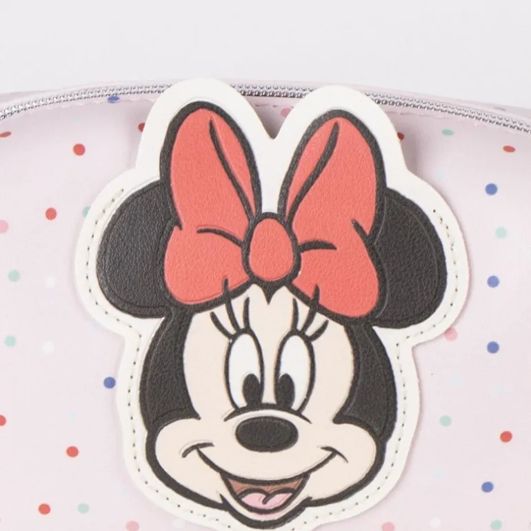 La cara de Minnie Mouse, con su icónico lazo rojo, se destaca en el frente del neceser, capturando la esencia divertida y juguetona del personaje que tanto encantará a las niñas. El cierre es seguro y fácil de usar, gracias a su cremallera de metal con un tirador rojo, haciendo que abrir y cerrar sea una tarea sencilla para las más pequeñas.