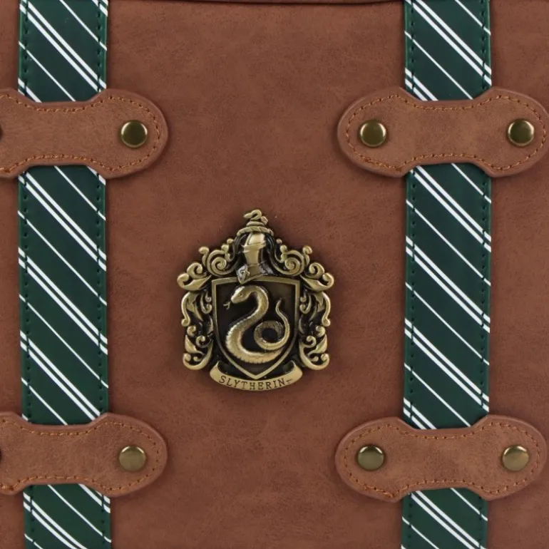 Sumérgete en el mundo mágico de Harry Potter con este neceser de aseo de viaje inspirado en la casa Slytherin. Fabricado en 100% PU, este elegante neceser de color marrón destaca por su diseño sofisticado y su durabilidad. Incluye detalles únicos como el emblema en relieve de Slytherin y las distintivas correas verdes con rayas, que evocan la esencia de la icónica casa.
