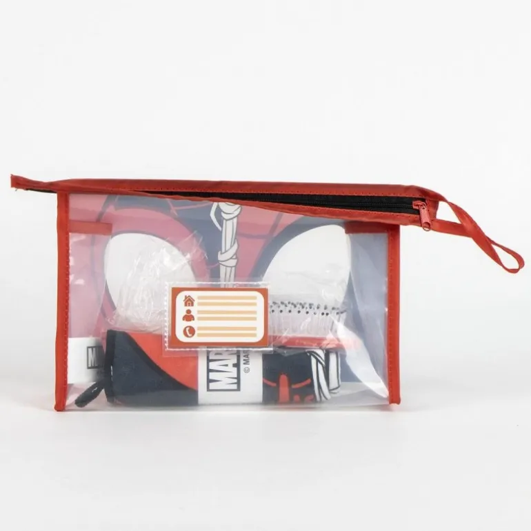 Este neceser de aseo de viaje inspirado en Spidey es el compañero perfecto para los pequeños aventureros. Con un diseño vibrante y llamativo, presenta el icónico rostro del héroe arácnido en tonos rojo y azul, perfecto para los fans de los cómics.