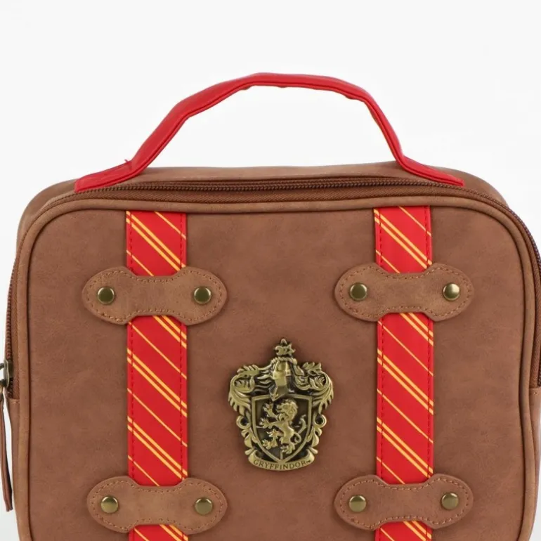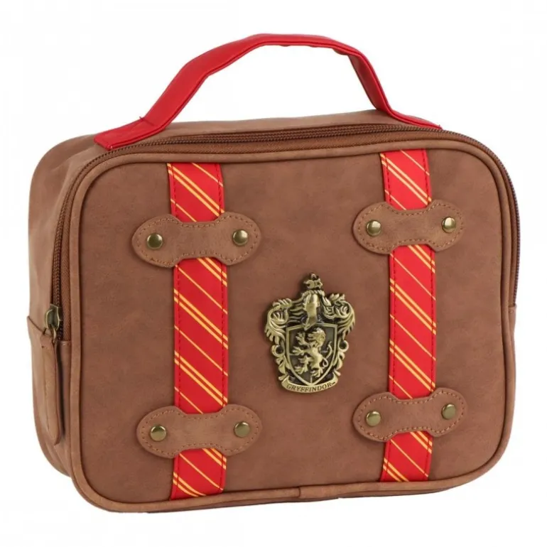 El neceser cuenta con un asa roja en la parte superior para facilitar su transporte y un cierre de cremallera seguro que garantiza que todos tus artículos de aseo estarán bien protegidos. Su tamaño compacto es perfecto para organizar tus objetos personales durante el viaje o día a día. Lleva contigo la magia de Hogwarts y muestra tu orgullo por Gryffindor con este accesorio indispensable.