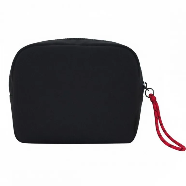 El cierre de cremallera garantiza la seguridad de tus artículos personales, mientras que la correa en rojo añade un contraste estiloso y facilita el transporte. Con el tamaño justo para guardar todos tus productos esenciales de aseo, este neceser ofrece funcionalidad sin sacrificar el estilo.