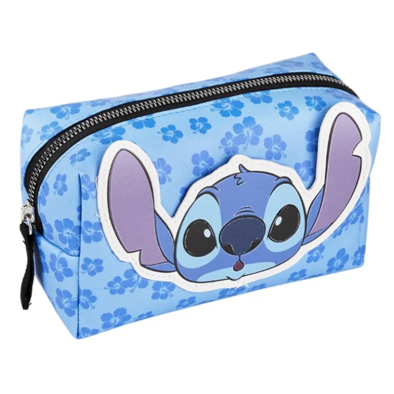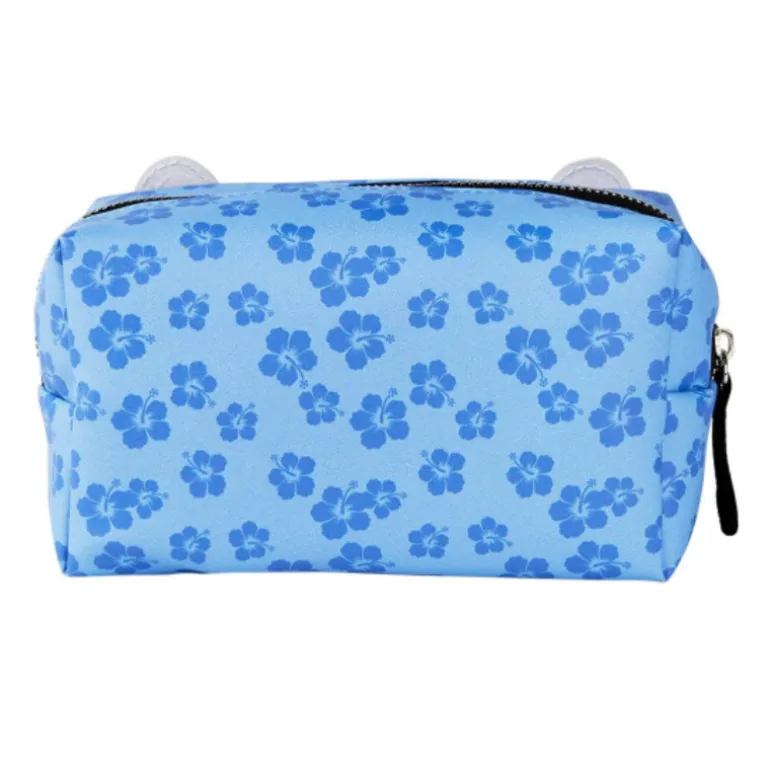 Este fantástico neceser de la mano de Stitch, para que puedas meter tus cosas de aseo o lo que te de la gana, muy útil para llevarlo de viaje. Su diseño es precioso con flores al estilo hawaiano y un gran estampado del pequeño alienígena de Disney con grandes orejitas que sobresalen por encima, toda una monada.