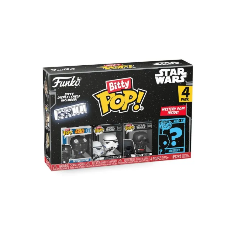 Y en esta ocasión Funko nos trae un pack de 4 figuritas que uno de ellos es un Mystery rare, son unos funkos de 2.5 cm de alto. En este caso es un pack con Darth Vader, un piloto de Tie, un Trooper y una sorpresa!