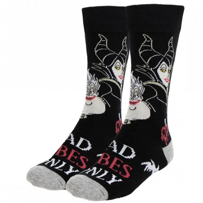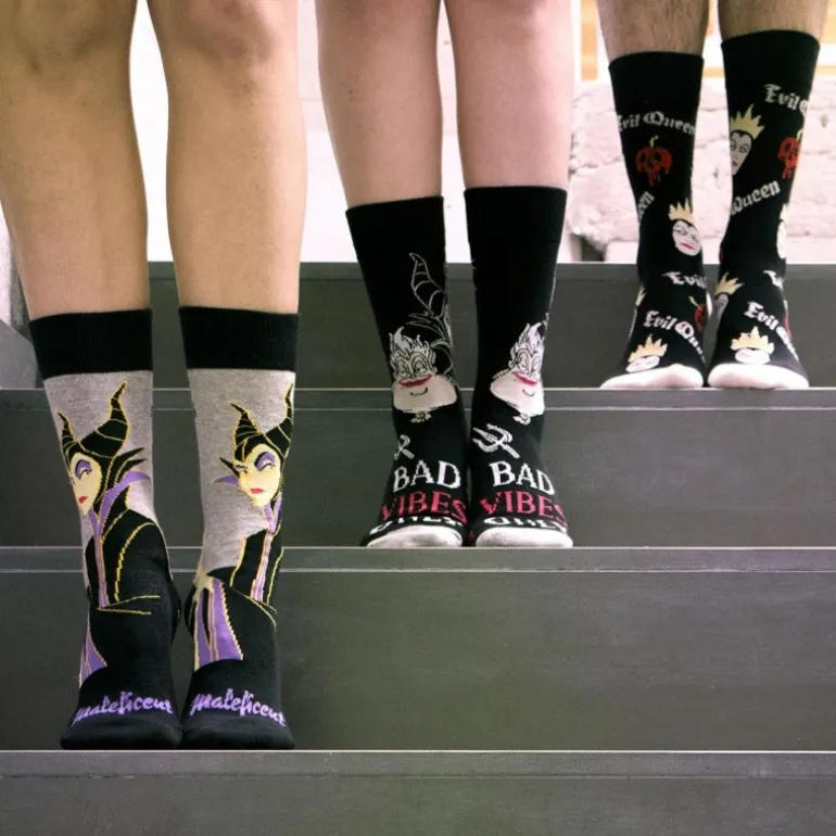 Este exclusivo pack de calcetines Disney Villanas es ideal para los amantes de los productos de Disney y los coleccionistas de artículos temáticos. Cada conjunto incluye tres pares de calcetines decorados con las icónicas villanas de Disney: Maléfica, la Reina Malvada y Cruella de Vil. Los calcetines presentan diseños detallados y colores vibrantes, destacando los rostros y elementos característicos de cada personaje.