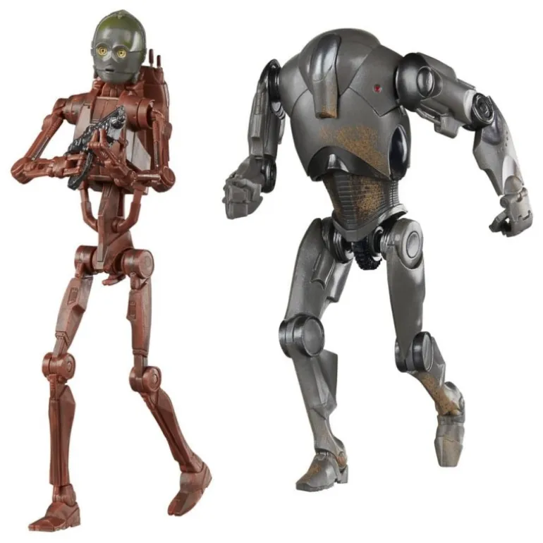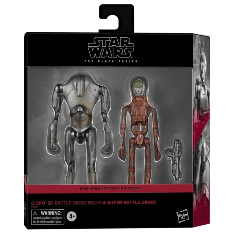 Sumérgete en el universo de Star Wars con este impresionante pack de 2 figuras de la línea The Black Series, que presenta a C-3PO con cuerpo de droid de batalla B1 y un Super Battle Droid. Fabricadas por Hasbro, estas figuras miden 15 cm y son una adición esencial para cualquier coleccionista o fanático de la saga.