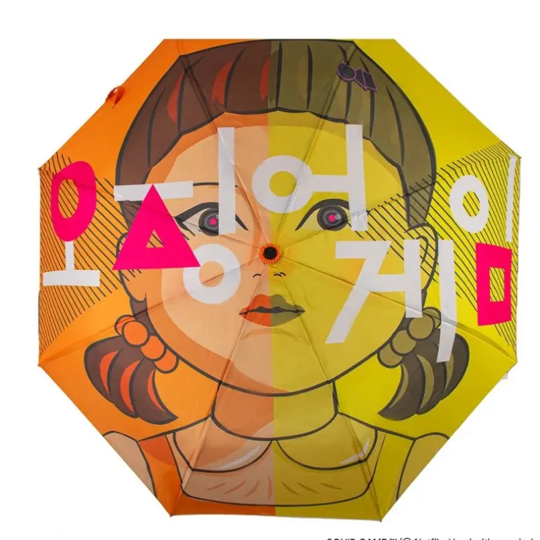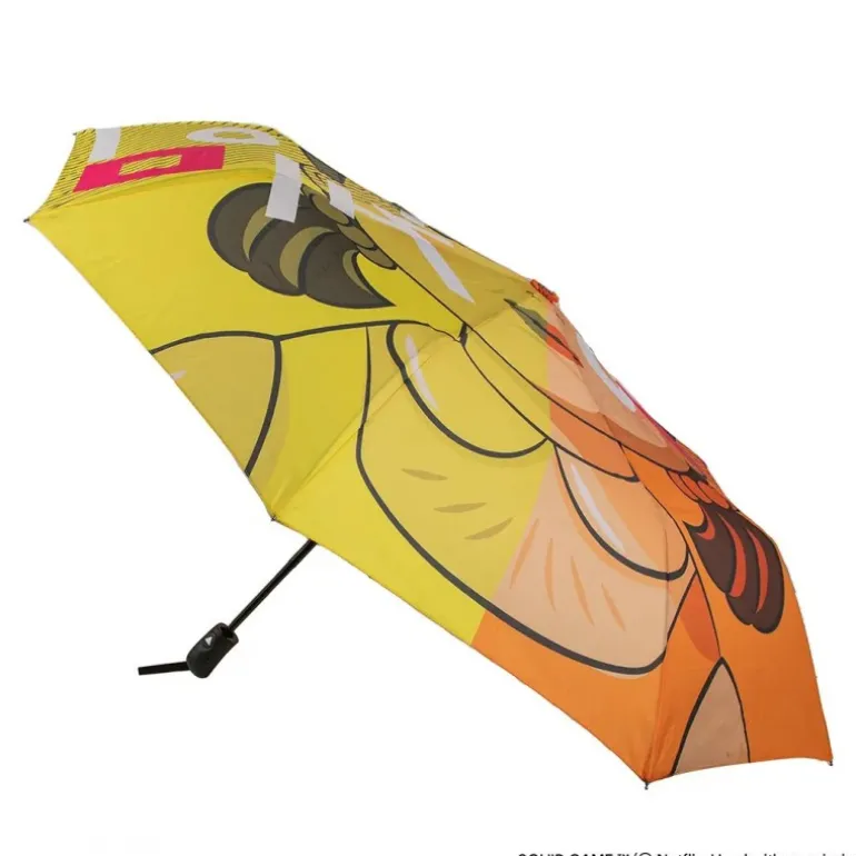 Descubre el espectacular Paraguas Young-Hee inspirado en la icónica serie Squid Game. Este paraguas, con medidas compactas de 32cm x 5,8cm x 5,8cm, es perfecto para llevar contigo a todas partes. Presenta un diseño vibrante en tonos amarillos y naranjas, destacando la figura de Young-Hee, el inquietante muñeco que seguro reconocerás. Además, las frases «Red Light, Green Light» añaden un toque auténtico al conjunto. Fabricado con materiales de alta calidad, ofrece durabilidad y protección en los días lluviosos. Disfruta de un artículo de colección único que no solo es funcional, sino que también es un verdadero homenaje a la serie que ha capturado la imaginación de millones. Ideal para apasionados de El Juego del Calamar que buscan algo más que un simple paraguas.