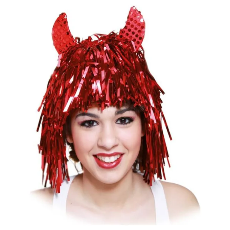 Peluca de Diablesa, Diabla o Demonia con cuernos. Perfecto en fiestas del terror como Halloween. ¡Compra en , un ecommerce con certificado de confianza online!