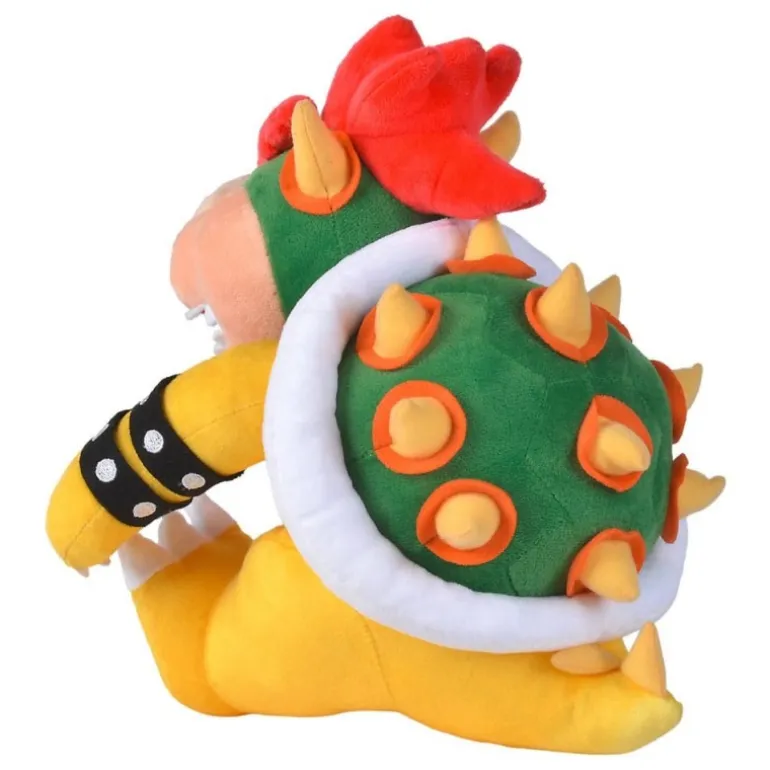Descubre el peluche de Bowser, una fiel representación del icónico personaje de Super Mario. Con su corpulencia distintiva, este peluche de 27 cm está diseñado con colores vibrantes y detalles auténticos que capturan a la perfección su feroz apariencia. Bowser luce su característica melena roja y su caparazón verde con picos naranjas. Sus grandes brazos amarillos están decorados con brazaletes negros, dándole un aspecto imponente pero suave al tacto.