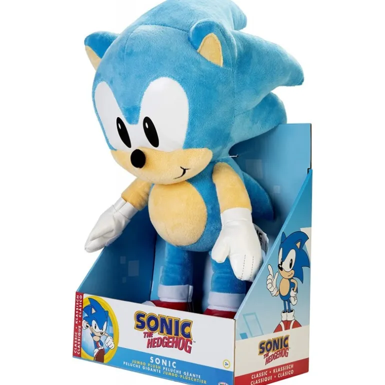 Descubre el Peluche Jumbo Sonic de 50 cm que todo fan de Sega y los videojuegos va a querer tener en su colección. Con un diseño fiel al personaje, este peluche destaca por su vibrante color azul, orejas puntiagudas y grandes ojos expresivos que evocan toda la velocidad y energía de Sonic.