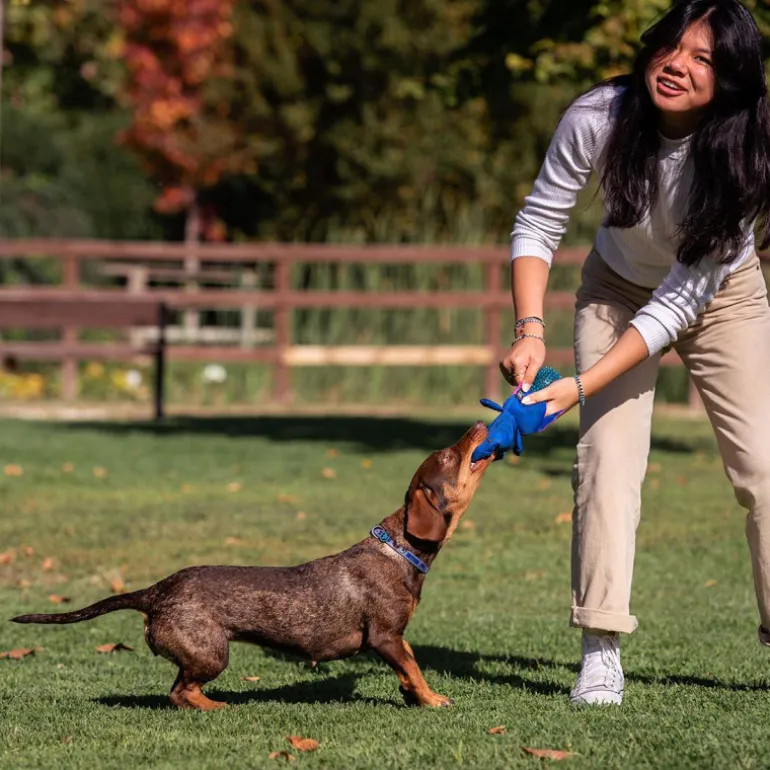 Mantén a tu perro activo y entretenido con este juguete. El sonido que produce el peluche al ser mordisqueado les encanta y no querrá soltarlo ni bien ni mal. Y tiene una pelota en su barriguita que puedes retirar.
