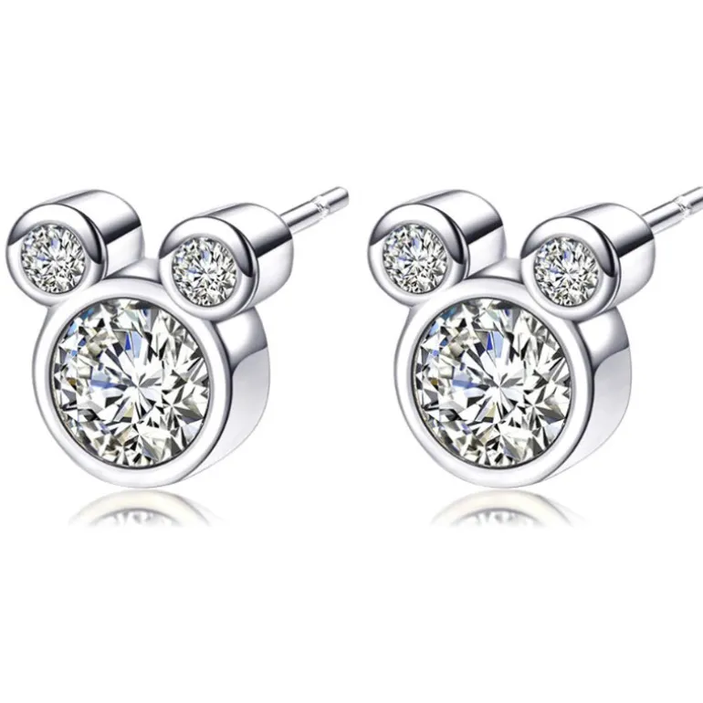 Unos preciosos pendientes de acero, con circonitas incrustadas, y un diseño basado en el ratoncito más emblemático de la factoría Disney, Mickey Mouse.