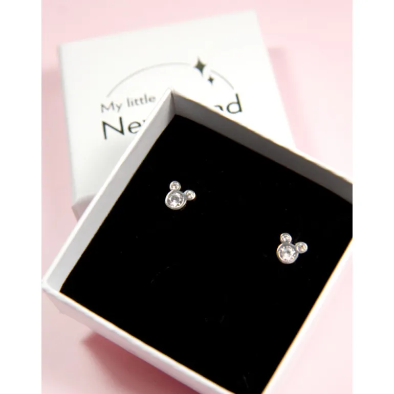 Unos preciosos pendientes de plata de My Little Neverland, con circonitas incrustadas, y un diseño inspirado en el ratoncito más emblemático de la factoría Disney, Mickey Mouse.