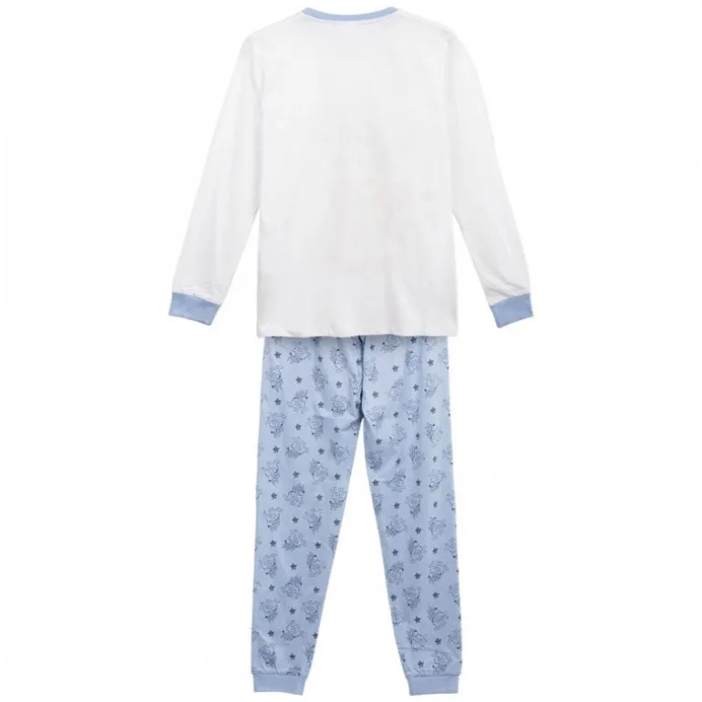 El pantalón azul claro complementa perfectamente el conjunto, decorado con pequeños patrones de Bluey estampados por toda la tela. Está diseñado para proporcionar máxima comodidad gracias a su confección en 100% algodón, ideal para el descanso y suave al tacto.