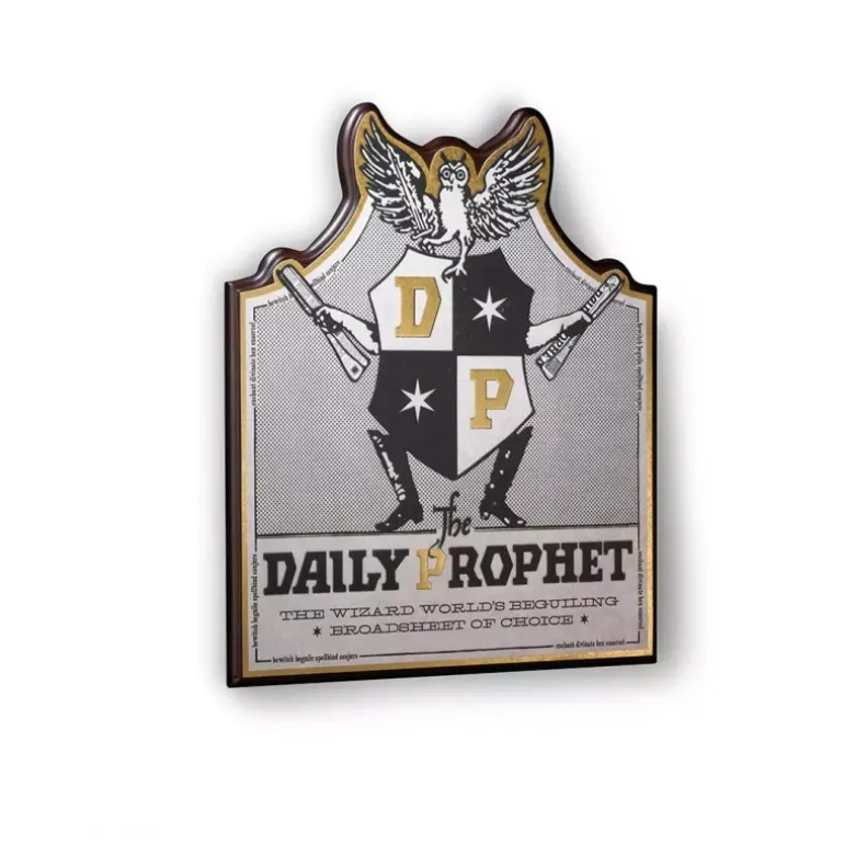 Esta excepcional placa del Periódico El Profeta es un artículo imprescindible para los coleccionistas de Harry Potter. Con unas dimensiones de 43cm x 35cm x 7cm, es el complemento perfecto para cualquier espacio dedicado al mundo mágico. La placa presenta el icónico diseño del Daily Prophet con detalles en blanco y negro, resaltados por toques dorados que le confieren un aspecto elegante y auténtico. Fabricada con materiales de alta calidad, garantiza durabilidad y un acabado impecable. Ideal para fans que desean añadir un toque auténtico a su colección. Este producto no solo es decorativo, sino que también es un excelente regalo para cualquier amante de las aventuras de Harry Potter, permitiendo revivir la magia a través de uno de sus símbolos más emblemáticos.