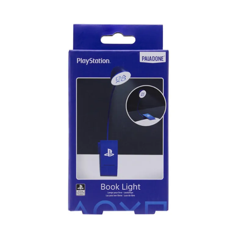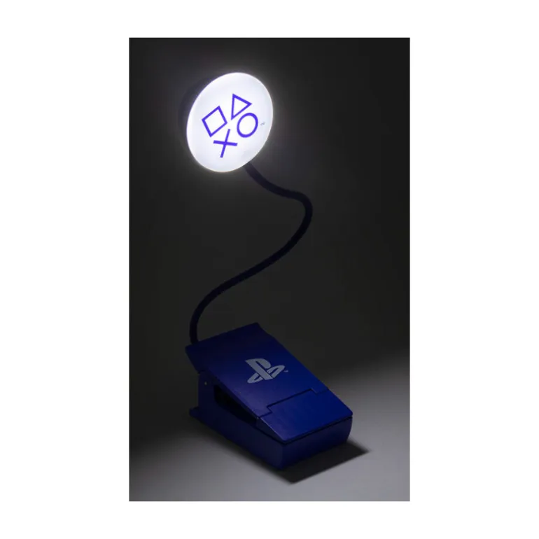 Se trata de una de esas pequeñas lamparas con pinza para leer de manera individual, la puedes colocar directamente en el libro o revista que estés leyendo sin molestar a nadie porque es muy focal y al tener el pie de alambre puedes apuntar en la dirección que tu quieras. Funciona con tres pilas AAA que no vienen incluídas y su diseño es muy molón, en este caso es entera azul con el logo de PlayStation y la parte que ilumina tiene un difusor para que la luz sea más agradable con los símbolos del mando de la consola.