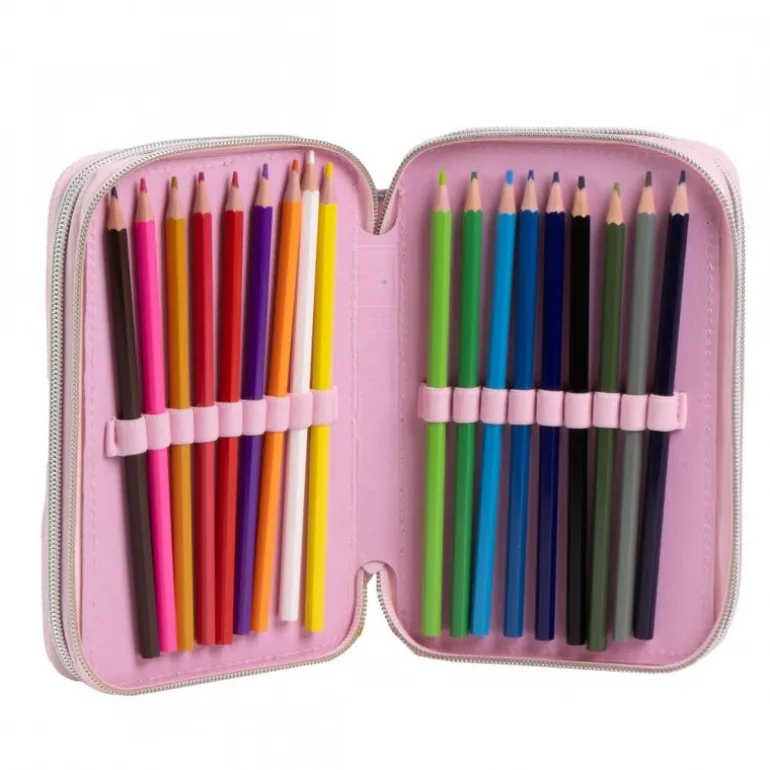 Dentro, encontrarás una amplia variedad de accesorios escolares: lápices de colores, rotuladores, reglas, goma y sacapuntas, todo organizado para facilitar el acceso y mantener el orden. El interior es de un suave rosa que complementa a la perfección el diseño exterior, presentando a Minnie en una alegre pose. Este plumier no solo es funcional, sino también un accesorio encantador que inspirará la creatividad de los niños, haciendo del aprendizaje una experiencia divertida y atractiva.