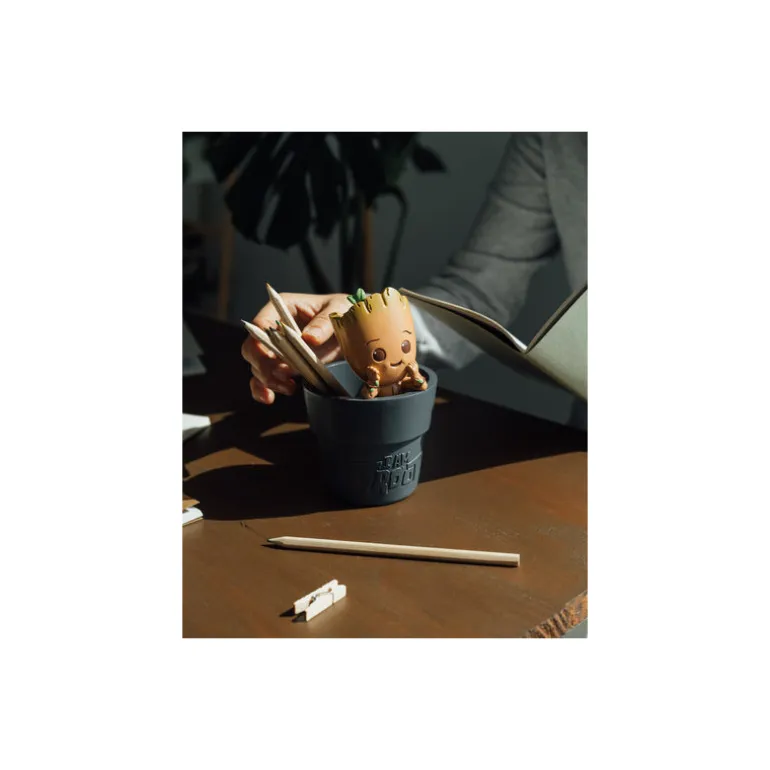 Un portalápices realmente original, fabricado en resina y con un diseño inspirado en el adorable Groot de los Guardianes de la Galaxia.