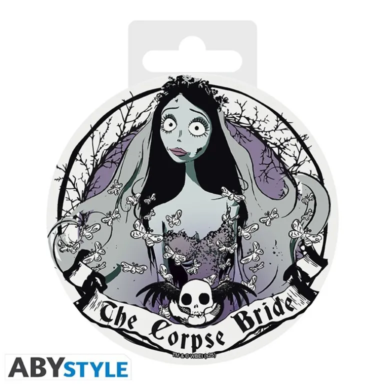 Estos posavasos de cerámica están inspirados en el icónico personaje Emily de Corpse Bride. El diseño presenta a Emily en tonos morados y grises, rodeada de un marco de ramas y una decoración de insectos, transmitiendo la estética única de la película.