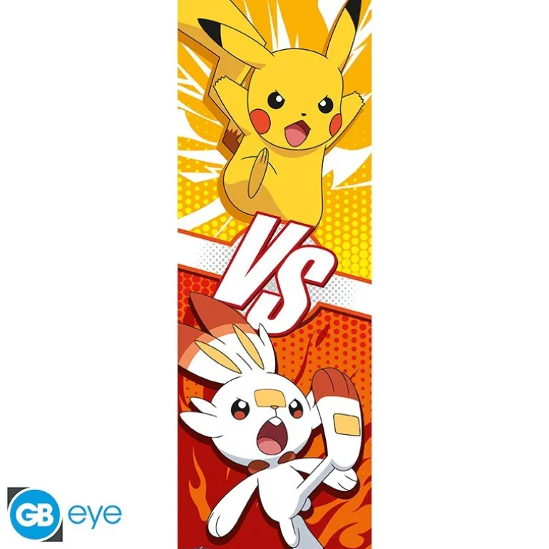 Transforma tu espacio con este póster de puerta de Pokémon con los vibrantes personajes Pikachu y Scorbunny. Con un diseño dinámico, muestra a Pikachu en la parte superior, listo para la acción, sobre un fondo amarillo eléctrico que resalta su energía. Justo debajo, Scorbunny aporta su chispa sobre un fondo rojo ardiente, creando un contraste perfecto que captará la atención de cualquier amante de Pokémon.