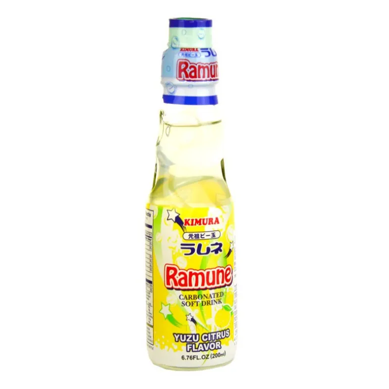 En esta ocasión tenemos un refresco que del quizás hayas oído hablar estás familiarizado con el mundo japonés, es el Ramune, una deliciosa bebida con gas ideal para tomar en cualquier momento y lugar, en este caso con sabor yuzu, ese cítrico japonés que tiene un sabor entre naranja, limón y mandarina. Y no te pierdas la botella original de vidrio con cuello especial con una bolita tipo canica para que no se escape el gas.