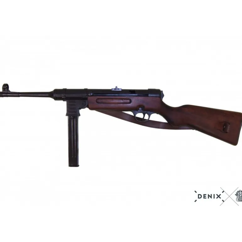 Sumérgete en la historia con esta exquisita réplica de la ametralladora MP41, una pieza icónica empleada durante la Segunda Guerra Mundial. Con una longitud de 86 cm y un peso de 3.235 g, esta réplica está diseñada a escala real, ofreciendo una reproducción detallada del modelo original alemán de 1940. Su estructura muestra un acabado en metal con partes de madera oscura que realzan su autenticidad. Destaca la presencia de una correa de piel marrón, proporcionando un aspecto clásico y elegante.