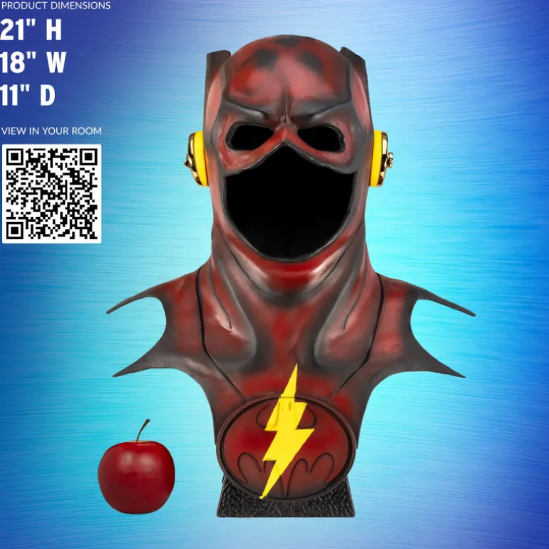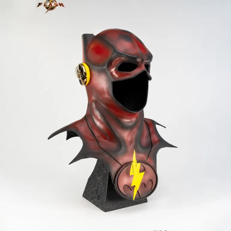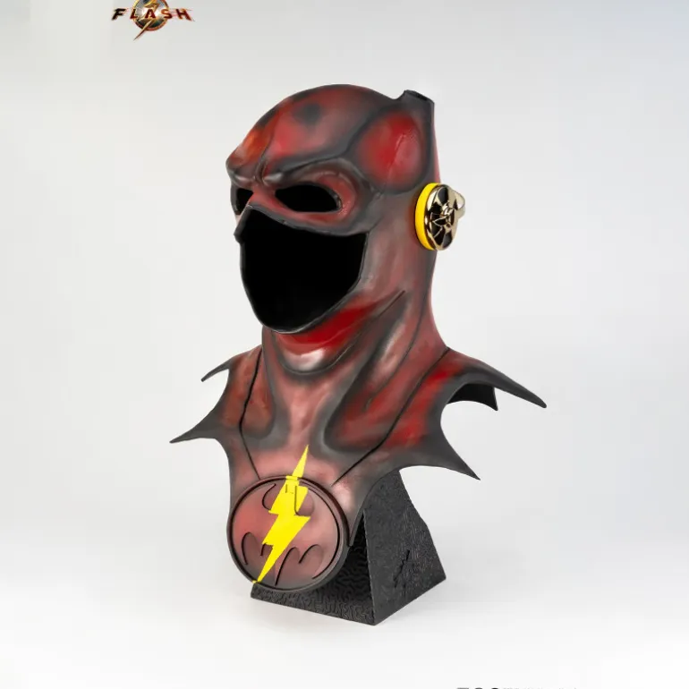 Descubre la réplica a escala 1:1 de la capucha de Young Barry de la película “The Flash”, diseñada meticulosamente por PureArts. Esta pieza es un homenaje al universo de DC, capturando cada detalle del diseño icónico del traje del joven Barry Allen. La capucha destaca por su acabado en color rojo oscuro con sombras negras, acentuando su estética poderosa. Las orejas recortadas y el emblema de The Flash pintado sobre el logotipo de Batman añaden un toque auténtico y enérgico que los coleccionistas apreciarán.