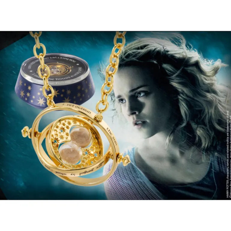 Si tú también tienes ese problema de que no te da la vida para todo, seguro que te vendrá muy bien este precioso colgante réplica del Giratiempo como el que usaba Hermione en la mítica saga de libros y películas Harry Potter, es una joya realizada por la prestigiosa firma The Noble Collection.