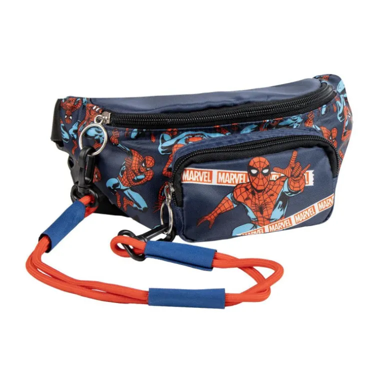 Descubre la riñonera Spiderman, un complemento imprescindible para los amantes del universo Marvel. Fabricada en un elegante color azul oscuro, esta riñonera está adornada con un atractivo estampado del icónico superhéroe Spiderman, destacando su estilo dinámico y audaz.