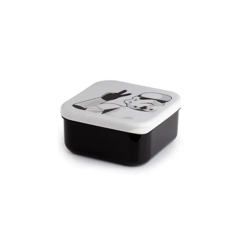 Se trata de 3 fiambreras de diferentes tamaños, y que pueden guardarse una dentro de otra como si fueran muñecas rusas. La más grande mide aproximadamente 5,5 x 11,5 x 11,5 cm. Cuentan con un diseño realmente práctico, además de una calidad fantástica tanto en la impresión de los dibujos, como en el material y unos acabados realmente conseguidos. Pero lo realmente maravilloso es su diseño, con unos dibujos de los Stormtropper.