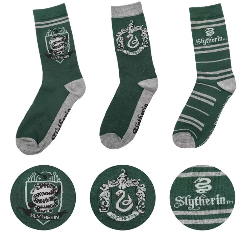 El lote de 3 pares de calcetines Slytherin Harry Potter es el complemento perfecto para cualquier ocasión, ya sea para coleccionar o para utilizar a diario. Su diseño único y su alta calidad los hacen un producto imprescindible para cualquier fan de la saga.