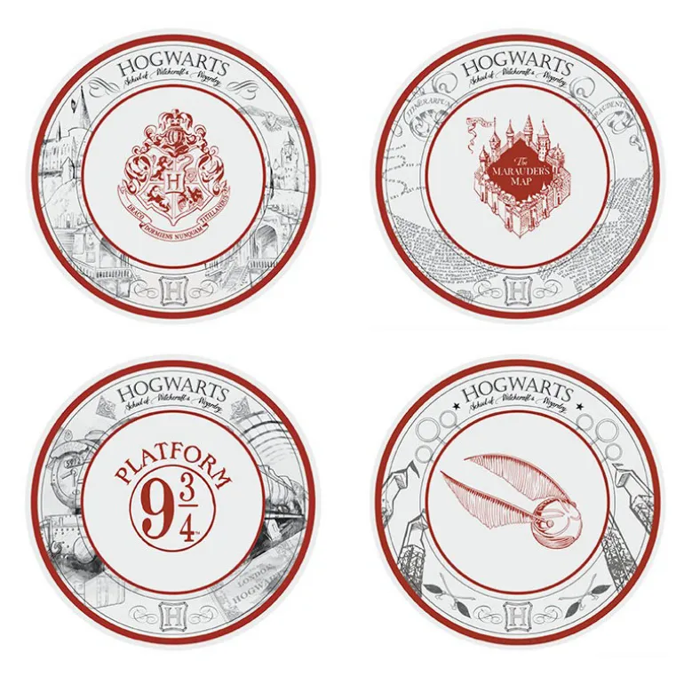 Un fantástico set de cuatro platos inspirados en la saga de libros y películas con más magia que existe, Harry Potter. Están fabricados bajo licencia oficial por el prestigioso fabricante francés Abystyle.