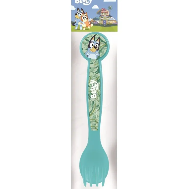 Descubre un set de cubiertos que combina diversión y funcionalidad con el adorable diseño de Bluey. Este set incluye un tenedor y una cuchara elaborados en un vibrante color azul turquesa, destacando un divertido estampado de hojas que acompaña el carismático personaje de Bluey en el mango. Ideal para los pequeños fans de la serie, estos cubiertos añaden un toque especial a la hora de comer.