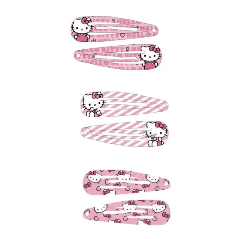 - Incluye: 6 horquillas metálicas con diferentes diseños estampados inspirados en Hello Kitty.