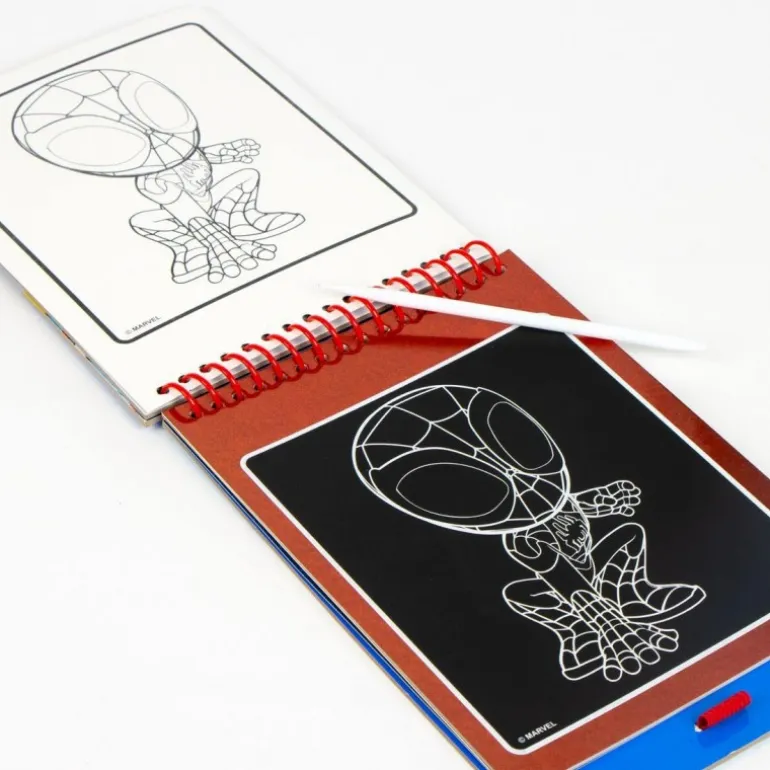 Descubre el Set de Papelería Scratch Book Spidey, ideal para los pequeños fanáticos de los superhéroes y la creatividad. Este libro de actividades presenta un diseño llamativo con personajes icónicos sobre un fondo azul brillante. Incluye figuras de Spider-Man y sus amigos, con detalles en colores vibrantes que capturan la imaginación de los niños.