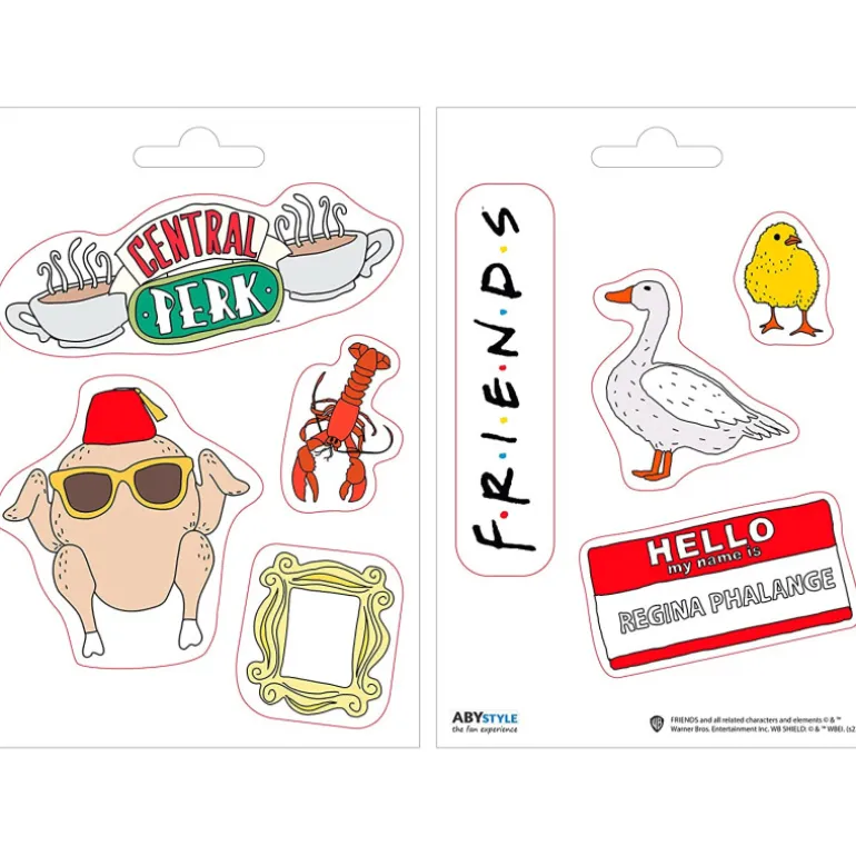 ¡¡Mira qué cosa más chula!! O más bien, qué cosas más chulas. Una serie de elegantísimas pegatinas de una de las series de televisión más míticas de los años 90 y que años después ha seguido teniendo el mismo éxito: Friends.